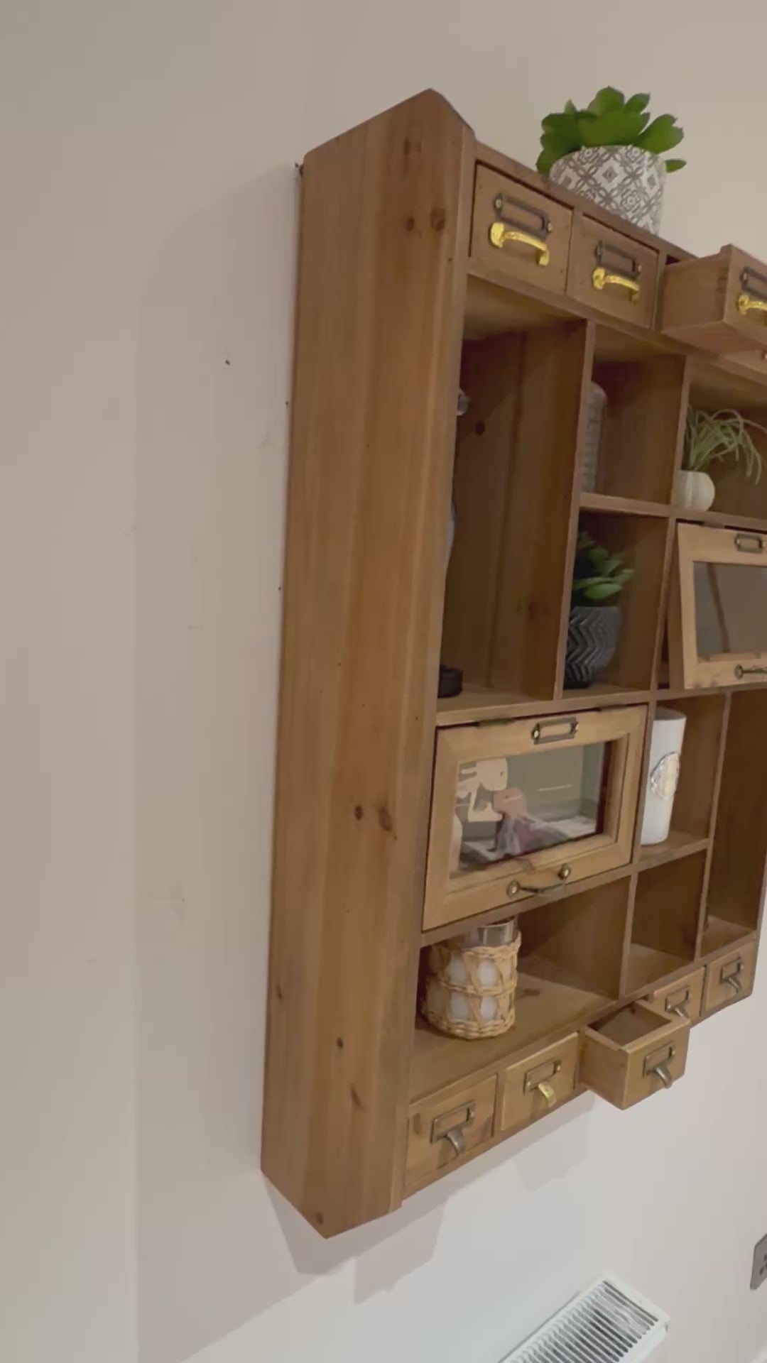 Expertly crafted from natural wood, this cabinet brings a "found object" vintage charm to kitchens, home offices, or craft rooms. Its wall-mounted design ensures you maximize your vertical space while adding significant character to your walls.